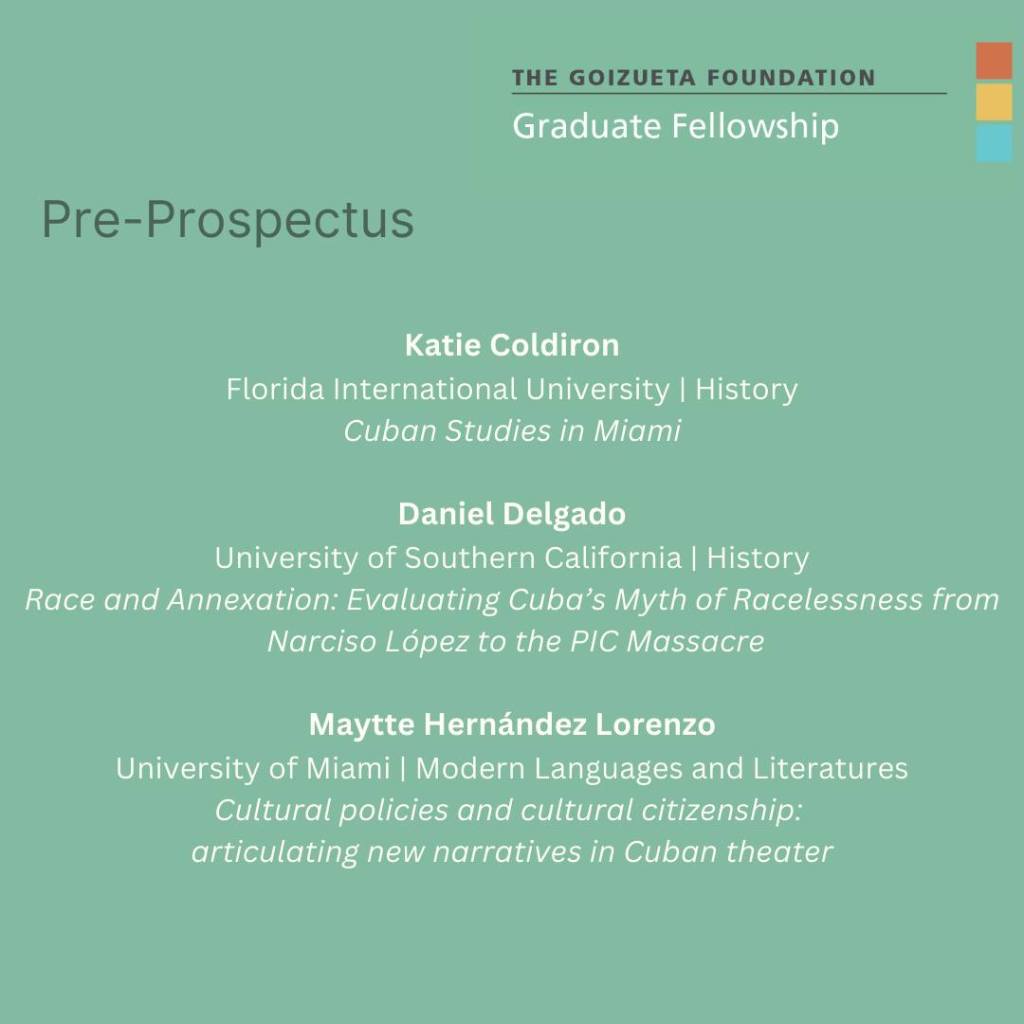 Launched in 2010 with a generous grant from The Goizueta Foundation, the Goizueta Foundation Graduate Fellowship Program provides assistance for supporting doctoral research at the Cuban Heritage Collection (CHC). The goal of the Goizueta Graduate Fellowships is to engage emerging scholars with the materials available in the CHC and thus contribute to the larger body of scholarship in Cuban and Cuban diaspora studies.