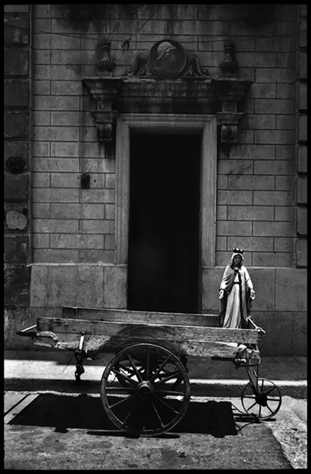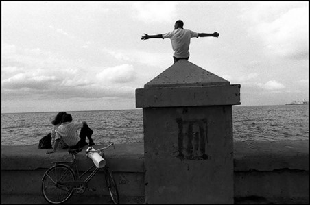 The images that integrate El muro were taken between 1991 and 1992, at the Havana seawall, el malecón. It could take years to define what that seawall means and why my father chose it as a subject. In the essay, you can trace a series of denounce marks: the graffiti that reminds the iron bars of a cell; the man riding a bicycle, “trapped” by a bunch of windows (dad used to call that photo “The thousand doors of Socialism,” meaning the idea of closed doors, the idea of asphyxia) or the emblematic “Cristo del malecón” (The Christ of the Seawall), that son who feels abandoned at the moment of crucifixion.