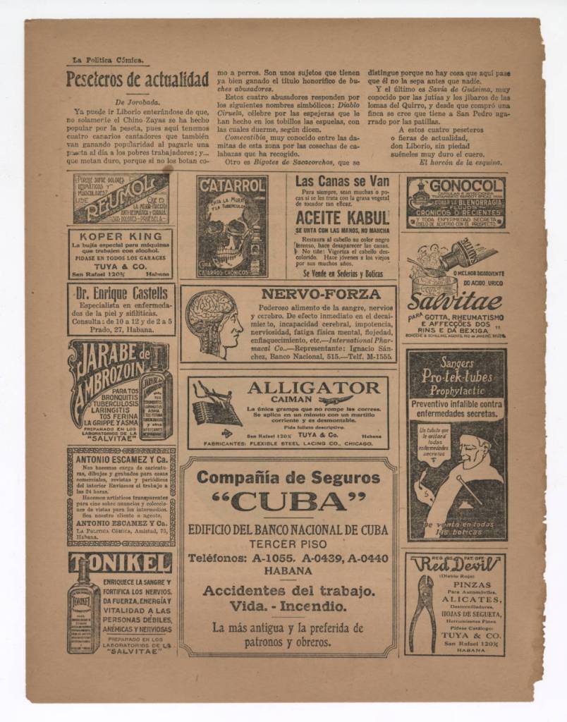 If we want to carry out a historiographic analysis of the way in which the medical institution was established in Latin America and the Caribbean, it is impossible to leave out the island of Cuba. Therefore, during my stay at the Cuban Heritage Collection, in addition to holding in my hands Cabrera’s handwritten works on alternative forms of healing through traditional medicine, I also reviewed entire collections of periodicals such as La Gaceta de La Habana, whose late 19th century issues reveal a curious interest in secret medicines. These were very popular in the Havana social sphere of the time, and speaking of curiosity, the complete collection of El Curioso Americano also reveals the developing debate that was taking place during the nineteenth century around the medical sciences.