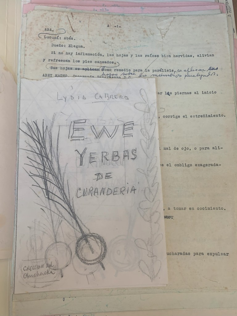 The intrinsic relationship between healing and magical religious practices is a theme that cuts across Cabrera’s work. Throughout her work, we see the convergence between the installation of the modern medical industry, which arrived with a boom from the West, and the traditional medical practices (indigenous and slaves) that still resist as a vital part of the Cuban collective imagination. This was the main reason why I applied as a Pre-Prospectus Fellow at the Cuban Heritage Collection. My main objective then was to carry out an exhaustive review of the wonderful collection of Lydia Cabrera’s papers in the CHC archives.