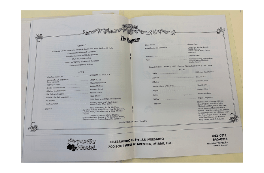 I recognize the work of many senior scholars before me who have studied the multiple migration waves of Cubans since 1959. My task of finding the artists within those migration waves sometimes feels like finding needles in multiple haystacks. However, the following collections were pivotal in my scavenger hunt: Ballet Concerto Collection, Norma Niurka Papers, Armando Álvarez Bravo Papers, INTAR Theater Records, Mariel (Revista) Papers, and the Theater Ephemera Collection. Taken together, I started to craft a history of the performing arts in Miami, as well as a history of the struggles to craft an artistic career in exile. I am convinced that Ballet Concerto’s programs (pictured here, too) will become central to my narrative: I found out that the founders of the ballet company, deserters themselves, invited the Soviet bloc’s defectors as guest dancers for their performances. For me, this is hitting the bullseye of ballet exiles from the socialist bloc supporting each other.