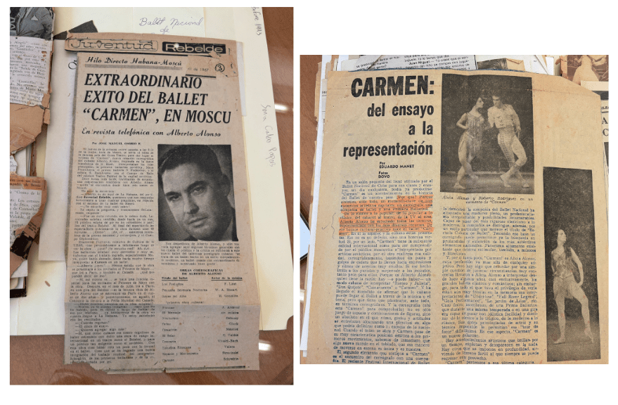 I started with the Alberto Alonso and Sonia Calero Papers. Being part of the Alonso trifecta, Alberto became an unexpected defector. This collection presented a rich history of his choreographic works in Cuba (and the Soviet Union) that were later, as other sources I found showed, not performed as much in the future. I was already seeing a clear narrative: Alberto and Sonia’s careers, both on the island in contrast to those in exile, are undoubtedly not uncommon for the rest of my historical characters.