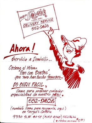 Throughout the history of the United States, restaurants have served important functions in immigrant communities as places to reminisce about home, forge communal bonds, and spur economic growth. In this regard, the Cuban community of South Florida is no exception, and in fact, restaurants are one of many factors that have led to the triumphant success story that is Miami’s Cuban American community. As Cubans continued to arrive in South Florida after Fidel Castro’s 1959 revolution, the community’s entrepreneurial spirit has helped reshape Miami in their own image. Between 1967 and 1976, the number of Cuban-owned businesses in Miami increased by over 700 percent, from 919 in 1967 to around 8,000 in 1976, numbers that have only continued to increase in succeeding decades. While the nature and size of these businesses vary, Portes and Wilson note that restaurants are particularly popular among smaller entrepreneurs.[1]