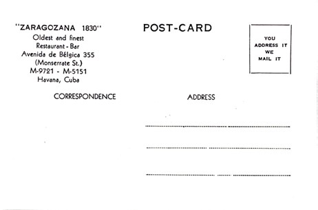 Images: La Zaragozana postcard, front and back (Guillermo “Willy” González Collection, Box 6)