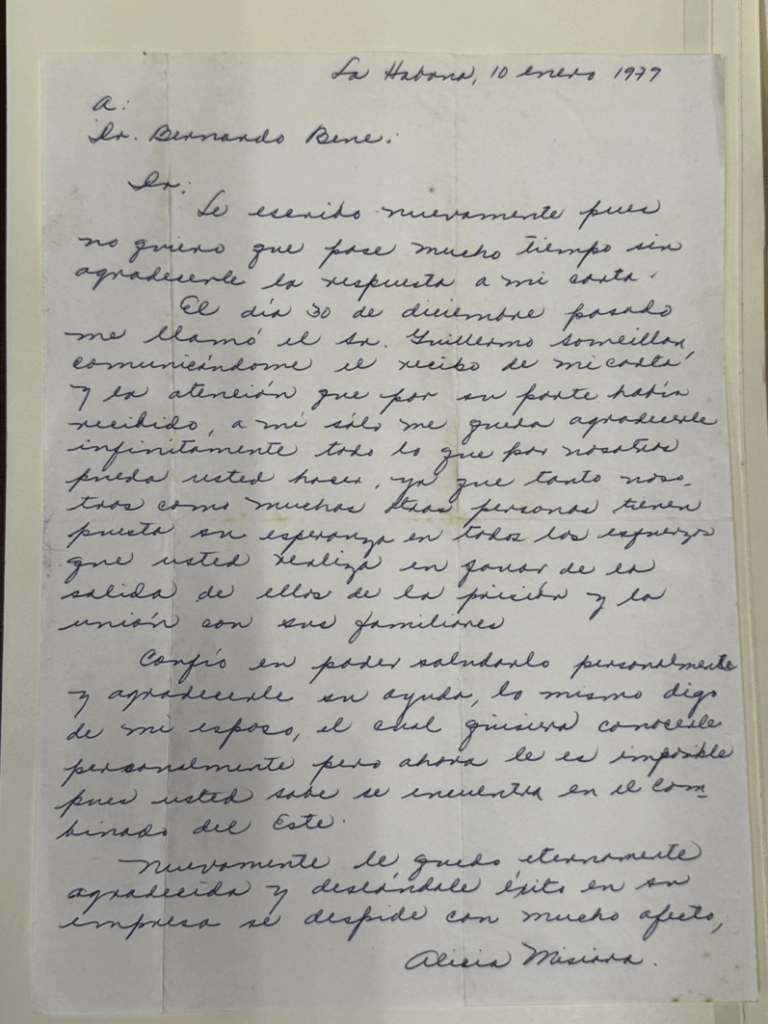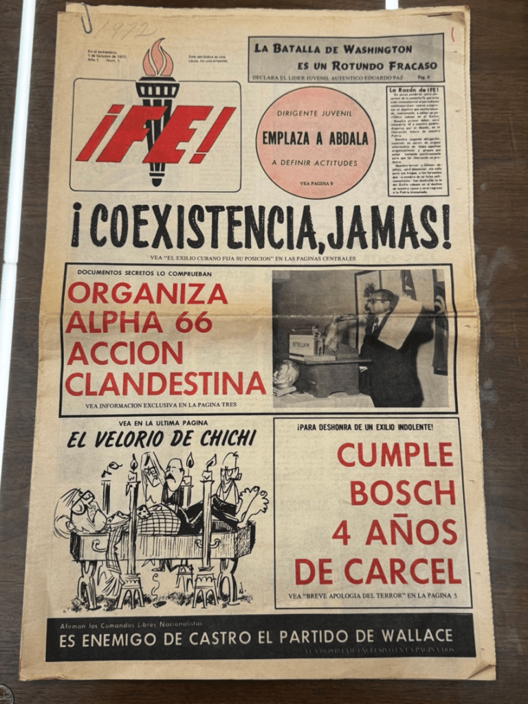 Over the course of two months, from Monday through Friday, I consistently examined many collections, newspapers, books, posters, and letters containing information on different aspects crucial to my research. Among the most interesting materials, I must highlight my findings in the Bernardo Benes Collection, which included communications with Cuban diplomats in the United States about negotiations between Havana and Miami, as well as letters from Cubans on the island requesting support for their travel to the United States in the context of The Dialogue in the 1970s. Moreover, the newspaper Fé!, directed by Carlos Rivero Collado, offered important insights into my work regarding the use of individuals and mass communication strategies as part of the Cuban regime’s intelligence and actions abroad. Through Fé! I found what I argue were intelligence reports by Cuban agent in Miami Carlos Rivero Collado and early evidence of strategies to destabilize the exile community from within.