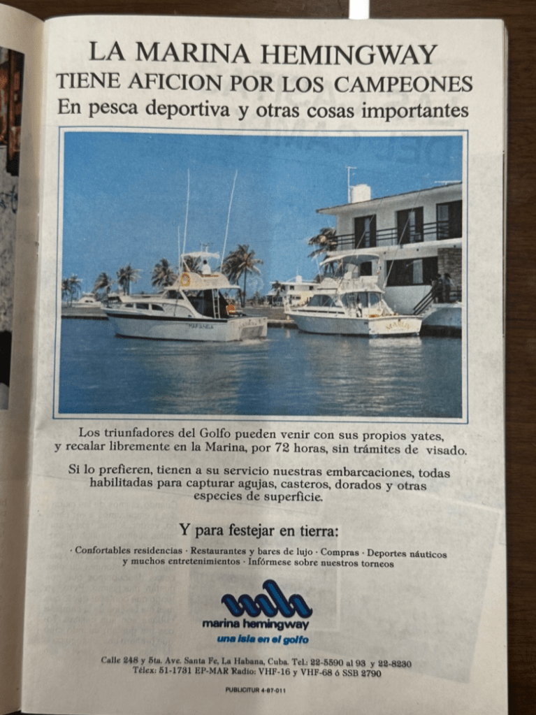 Finally, through my analysis of the Cuban bilingual magazine Sol de Cuba, I found relevant information on the centrality of tourism to the regime’s controversial economic strategy of attracting foreign currency to the island—what can be considered a form of dollar diplomacy—years before the creation of the Ministry of Tourism and the open adoption of tourism as a means to salvage the Cuban economy in the early 1990s. As Sol de Cuba reveals, in the 1980s the regime offered attractive conditions to those willing to visit the island for fishing, including the possibility of renting yachts or entering Cuban waters with private ones free of charge. It also included a 72-hour visa waiver and the ability to stay in one of many luxury accommodations and visit upscale restaurants that offered to foreigners what many Cubans who fought for and supported the Revolution could never afford.