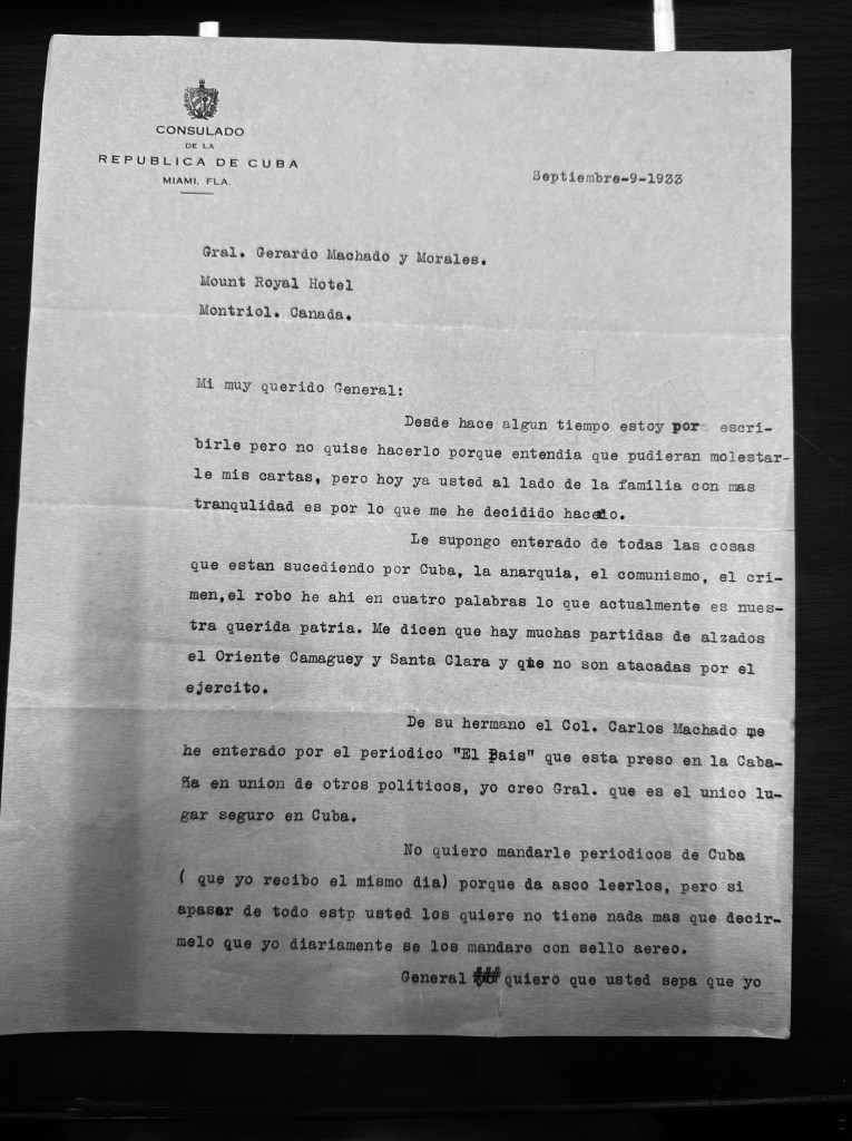 [8] Miguel Angel Campos Conde to Gerardo Machado y Morales, September 9th, 1933. Gerardo Machado y Morales Papers, Cuban Heritage Collection, University of Miami Libraries, Coral Gables, Florida. CHC0336, Box 2, Folder 3.